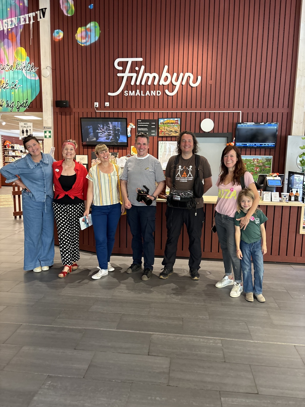 | Camilla Skude Petersson, Smålands turism som samordnar alla pressbesök på ett professionellt sätt. Marina Wenk och henns två medarbetare från TV M-scout, Julitta Ammerschläger med dotter som är journalist från München som besökte Filmbyn samma dag. |